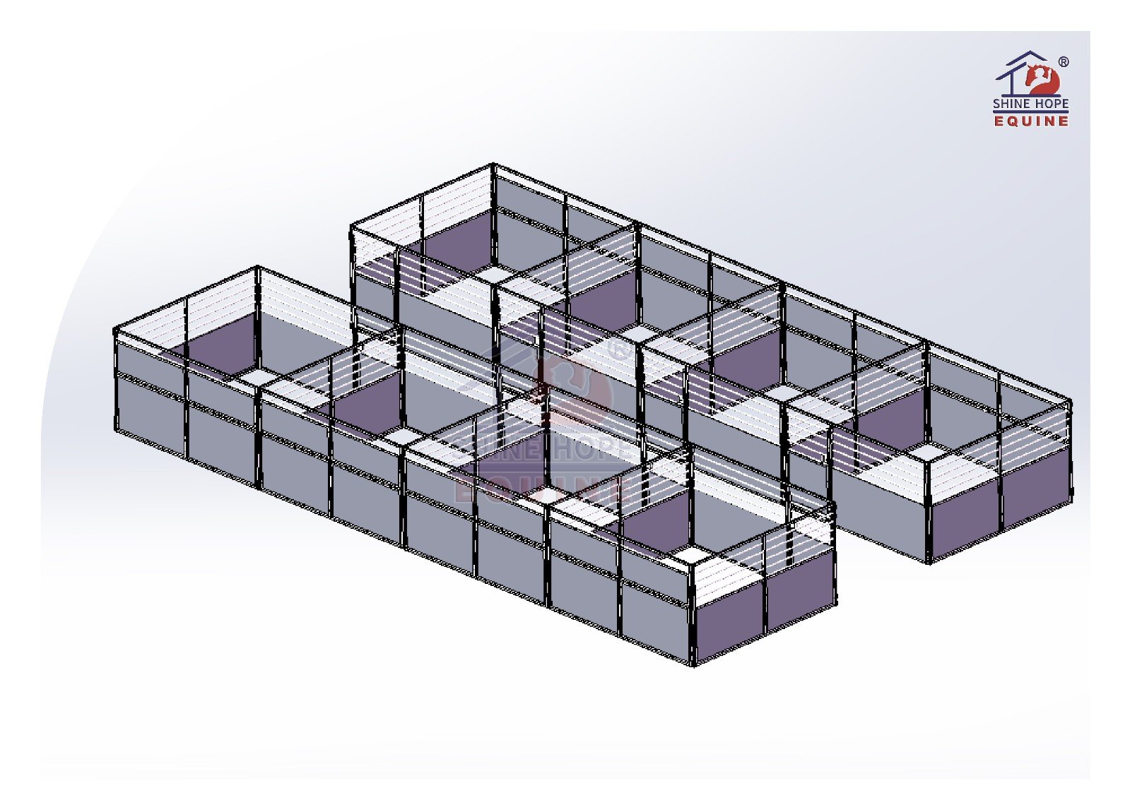 المميزات: توفر أكشاك الخيول المحمولة لدينا المرونة من حيث الموضع والتخطيط. يمكن تجميعها وتفكيكها ونقلها إلى مواقع مختلفة بسهولة. تحظى بشعبية كبيرة في عروض الخيول وفعاليات الخيول وتخييم الخيول.